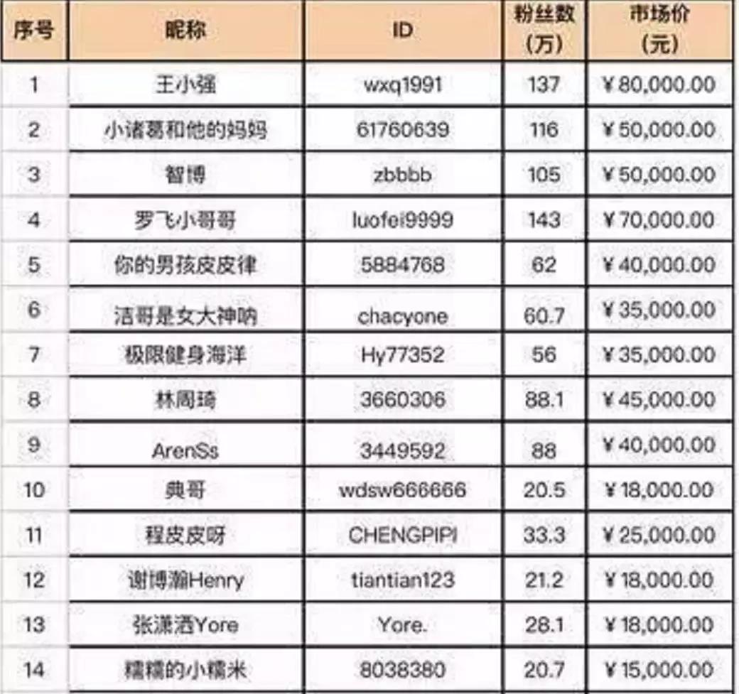 交易平臺上的部分抖音號標價